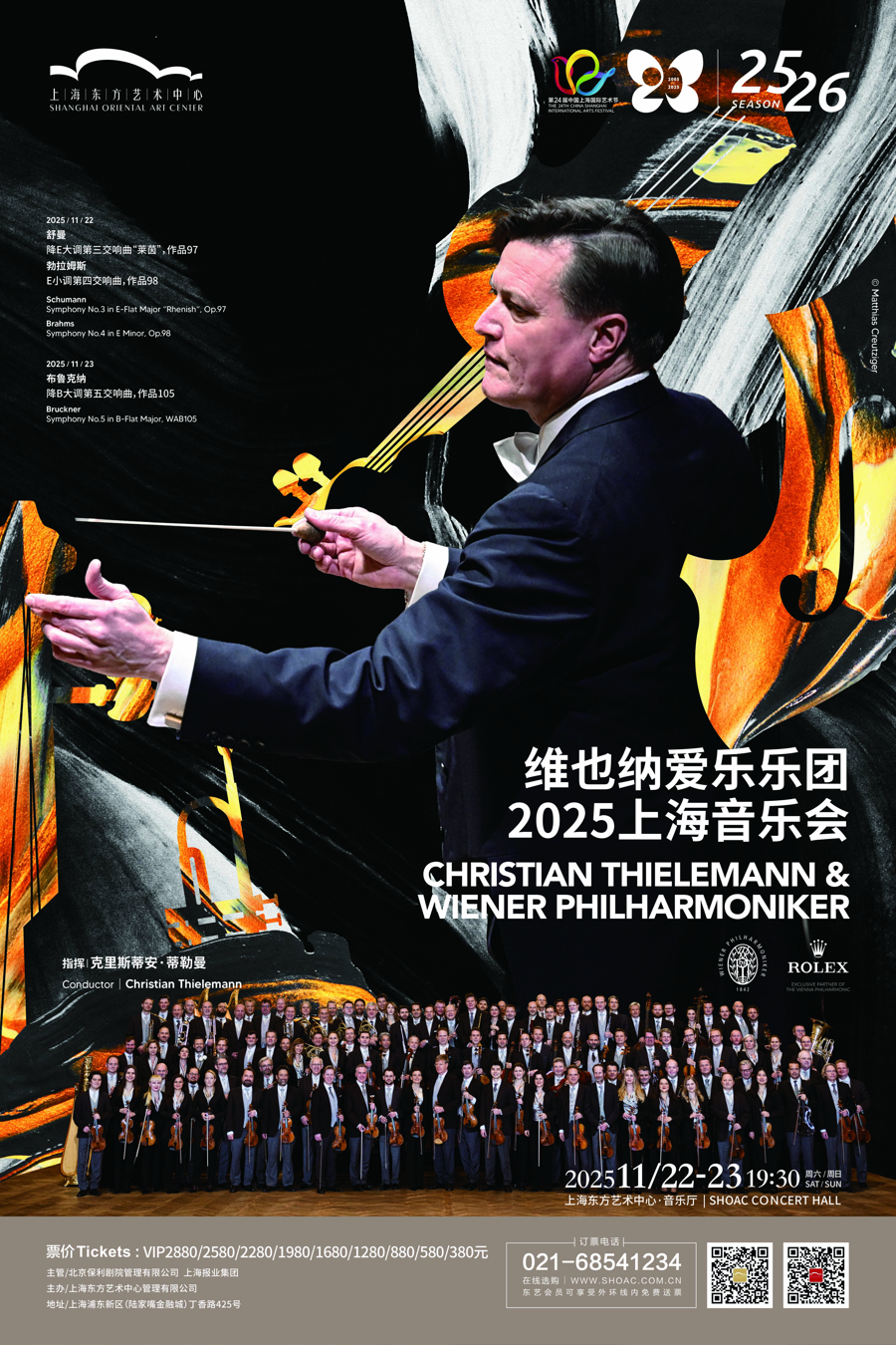 作为维也纳爱乐乐团首个中国战略合作伙伴,继去年双方达成长期战略合作后,今年,东艺将迎来维也纳爱乐的第七次来访。11月22日、23日,乐团将在合作密切的指挥克里斯蒂安·蒂勒曼执棒下,以浪漫与后浪漫主义为线索,演绎舒曼、勃拉姆斯和布鲁克纳杰作。蒂勒曼与维也纳爱乐合作已25年,曾两度执棒维也纳新年音乐会,录制布鲁克纳交响曲全集等标杆唱片,2024年获颁乐团荣誉会员。