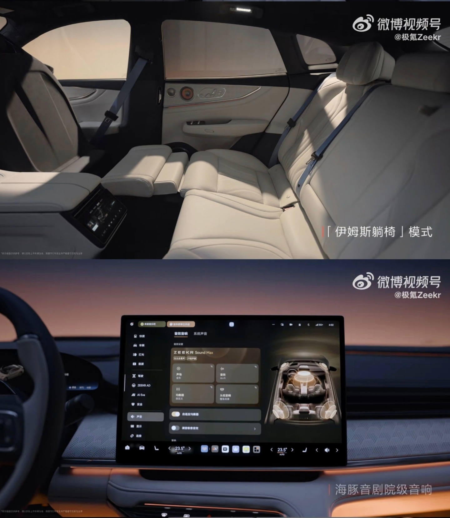 其他方面,新车配有“海豚音”剧院级音响,不过喇叭数量及功率暂时未知;座椅支持 3D 深层按摩,右后排还提供了“伊姆斯躺椅”模式,可令腿托几乎与坐垫平齐,并通过折叠前排座椅获得较好的舒适性。